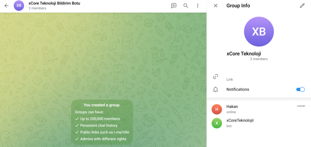 Şimdi, Telegram üzerinde gelen bildirimleri kontrol edelim.