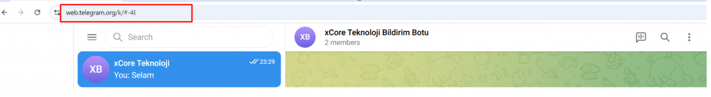 Telegram grubunu tarayıcıda açtığınızda, ekranda görünen ve – işareti ile başlayan Chat ID’yi not edin.